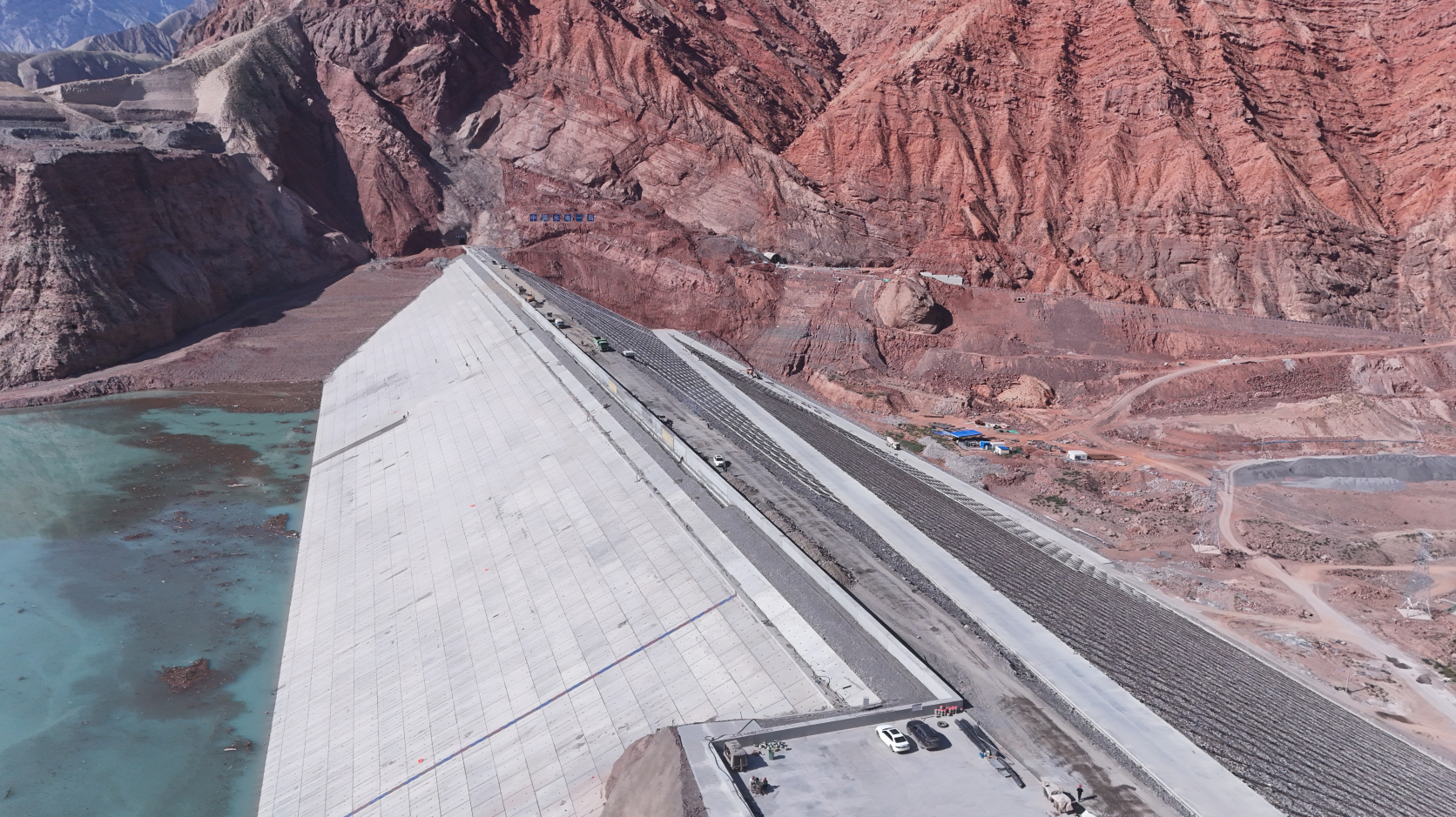 哈密抽蓄電站下水庫攔河壩施工現場